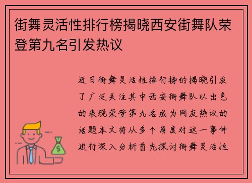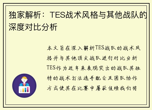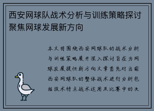本文将深入分析西安网球队在比赛中采用的包夹战术,探讨其优势与应用策略。首先,将对包夹战术的定义和基本操作进行介绍,以便读者理解其重要性。接着,从战术的协同作战、压制对手、提高防守效率以及适应多变局势四个方面详细阐述包夹战术的优势。此外,文章将进一步探讨如何在实际比赛中灵活应用这一战术,使其发挥最大效...